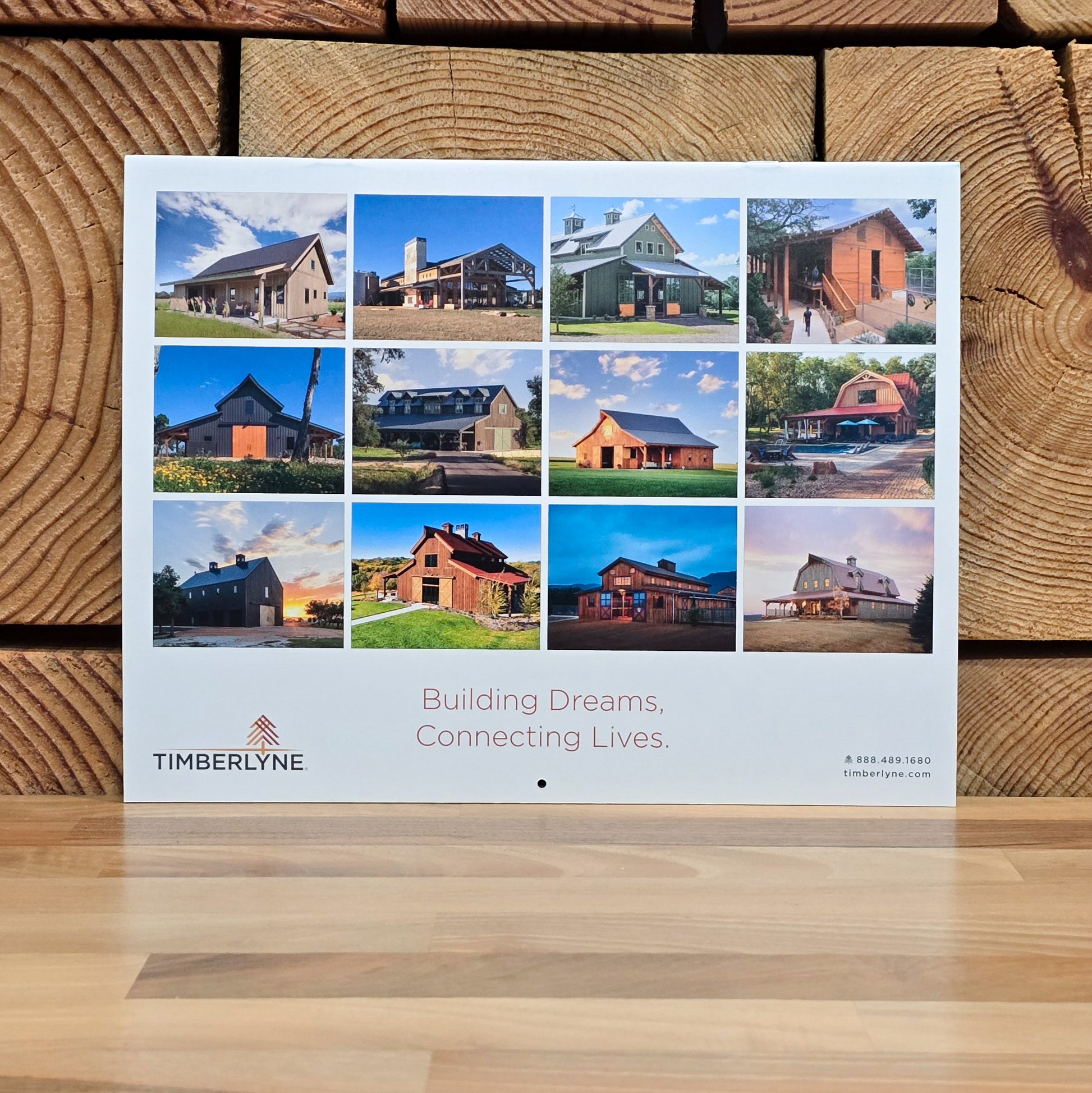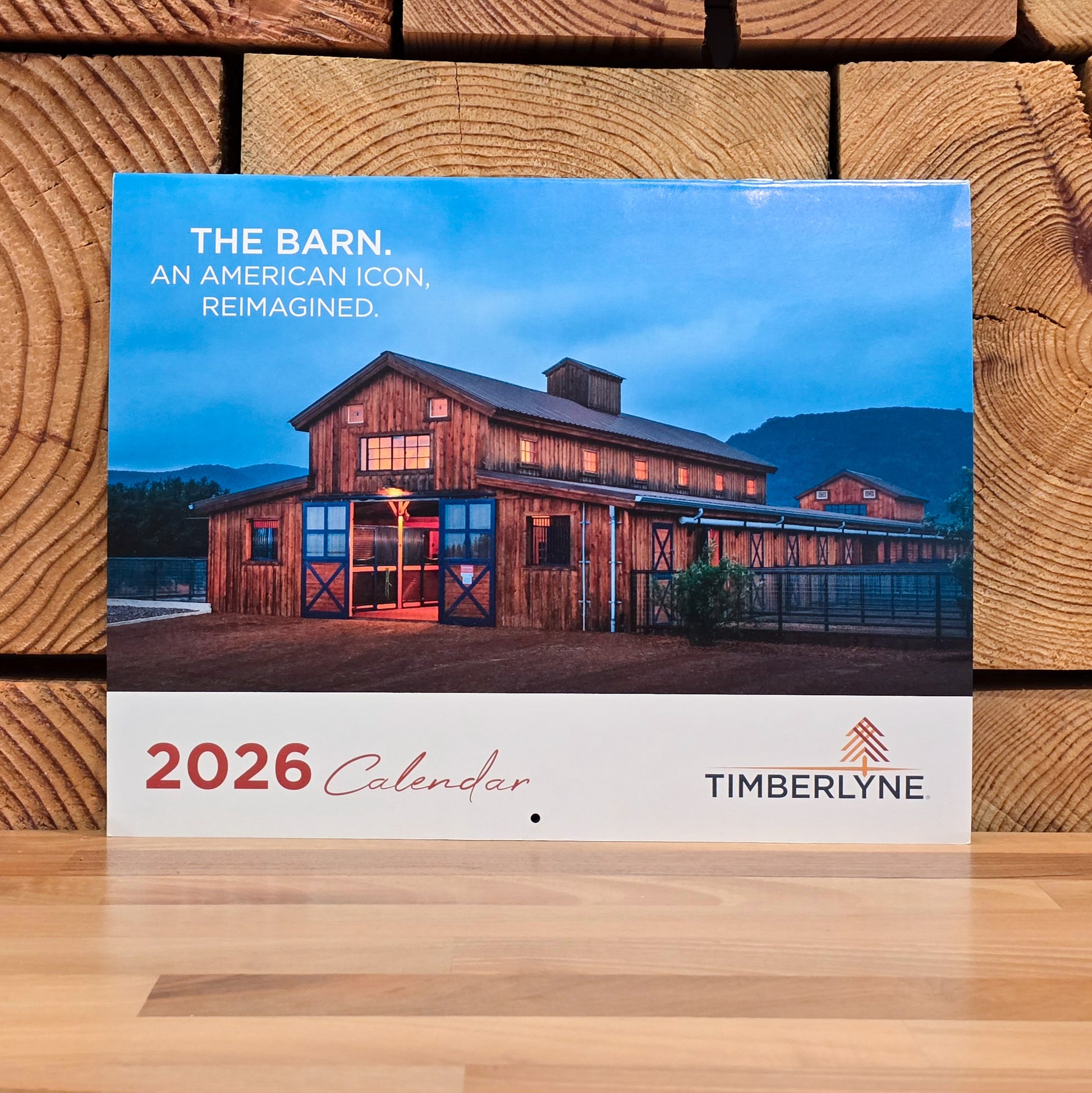 The 2026 Timberlyne calendar showcases twelve projects with stunning photography. Each month, you'll get inspired by a new barn, whether a horse barn, party barn, or barn home - each uniquely designed for the owners. These iconic, beautiful designs utilize the strength and beauty of wood.